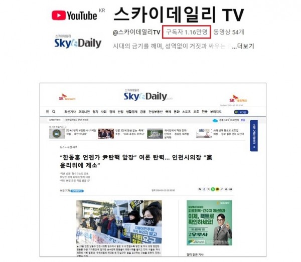 한편 최근 들어 하루 수백 부씩 구독 신청이 폭증하고 있는 스카이데일리는 유튜브 채널 런칭 하루 만에 구독자가 1만 명을 돌파하며 큰 반향을 불러일으키고 있다.