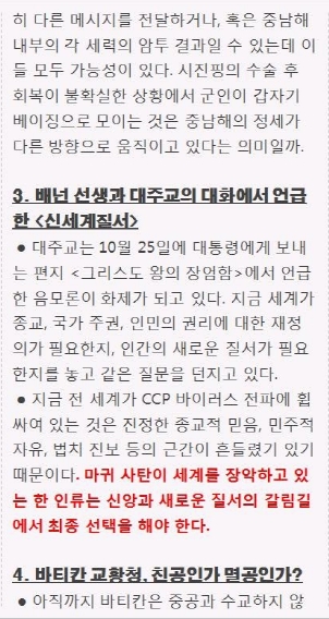 시진핑은 수술후에도 나타나 일을할수 없다, 바티칸 교황청..친공인가? 멸공인가?