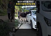 '차를 막아선 황소, 조용한 마을에 피어난 우정 "쇼츠 "동물사랑 "힐링영상'