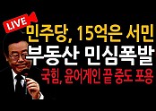 속보) 이재명, 궁예의 운명이 다가온다! 관심법 난리났다! 민주당 의원 '15억이면 서민 아파트' 국민 분노…