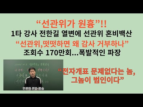 선관위,떳떳하면 왜 감사거부하나”. 한국사 1타 강사 1타 강사 전한길 열변에 선관위 초토화. 국민 30명 가운데 1명이 봤다…