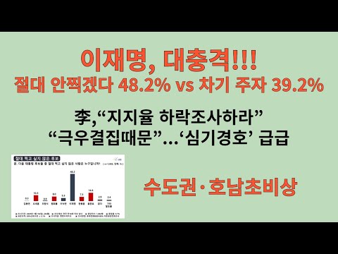 이재명 찍겠다vs안찍겠다. 39.2vs48.2. 대충격. 수도권과 호남, 2030 모두 등돌렸다. 민주당, “보수결집때문. 금…