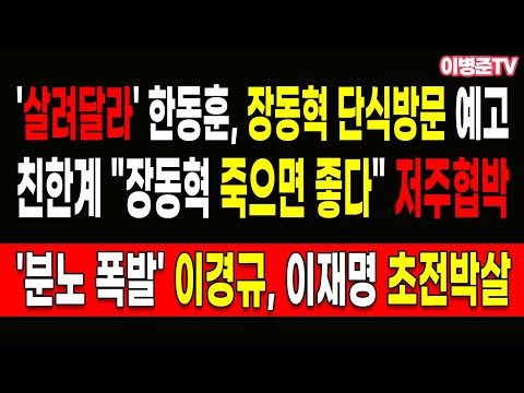 친한계 "장동혁 죽으면 좋다" 저주협박! '살려달라' 한동훈, 장동혁 단식방문 예고!