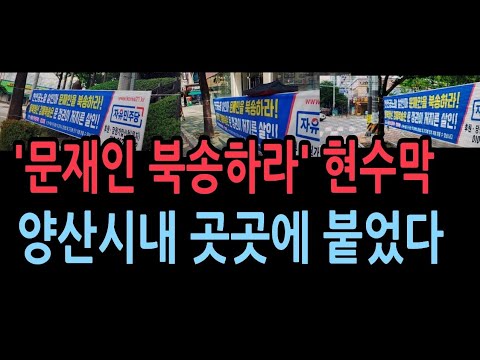 문재인 현수막, 양산시내. 사저 곳곳에 붙었다./ 제주 떠났다던 文 부부… 'Still in Jeju'라는 글과 사진 올렸다.…