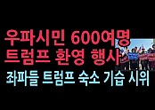 '우파 시민 600여명 김해공항 도로변서 태극기·성조기 들고 트럼프 환영...좌파 대학생단체 트럼프 숙소 앞…