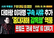 '[Live] 대마왕 이재명 구속 사유 추가! ‘중대재해 감옥행’ 역풍! 트럼프 ‘관세 인상’ 한국 대위기!…