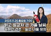웨더뉴스] 오늘의 날씨 (11월 20일 07시 기준)/ 오늘(월) 아침 쌀쌀, 낮에 기온 올라…동해안 불조심
