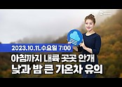 웨더뉴스] 오늘의 날씨 (10월 11일 07시 기준)/ 오늘(수) 청명한 하늘…일교차 커