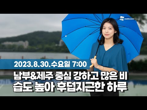 웨더뉴스] 오늘의 날씨 (08월 30일 07시 기준)/ 오늘(수) 전국 비․소나기…충청이남 호우 유의