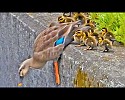 용감한가? 영리한가? 엄마 오리가 아기 오리에게 점프를…