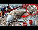수백만 마리의 따개비에 다친 흰돌고래가 구조대에 의해 …